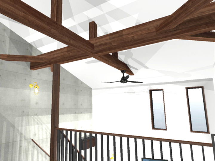 リビング吹抜け天井見上げたイメージ